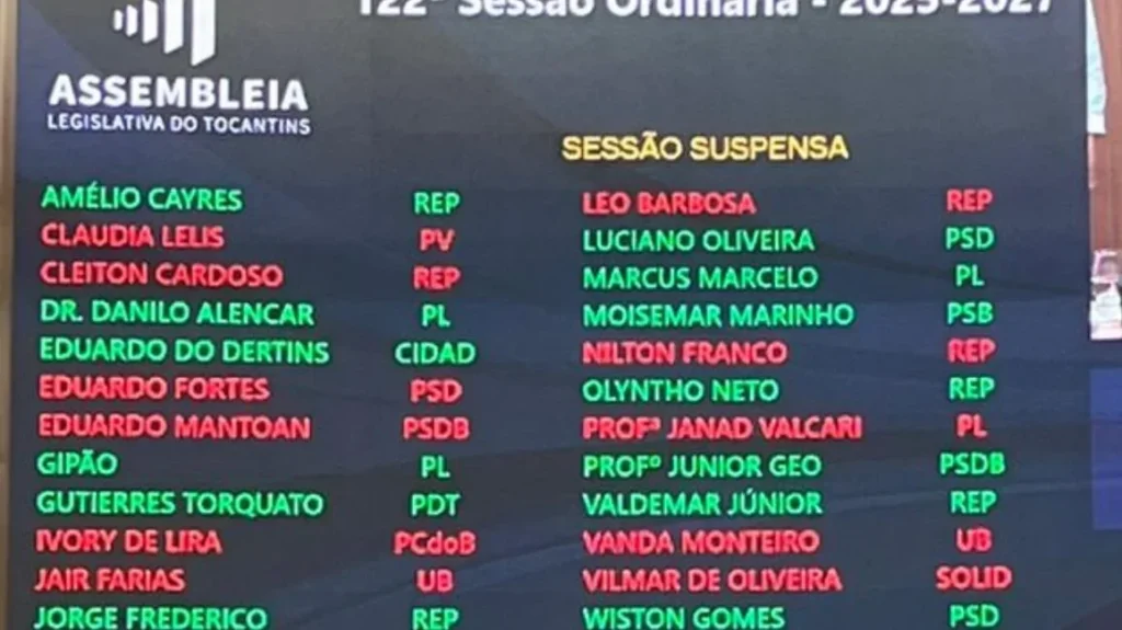 Não participaram da sessão: Cláudia Lelis (PV), Cleiton Cardoso (Republicanos), Eduardo Fortes (PSD), Eduardo Mantoan (PSDB), Ivory de Lira (PCdoB), Jair Farias (UB), Léo Barbosa (Republicanos), Nilton Franco (Republicanos), Janad Valcari (PL), Vanda Monteiro (UB) e Vilmar de Oliveira (SD).