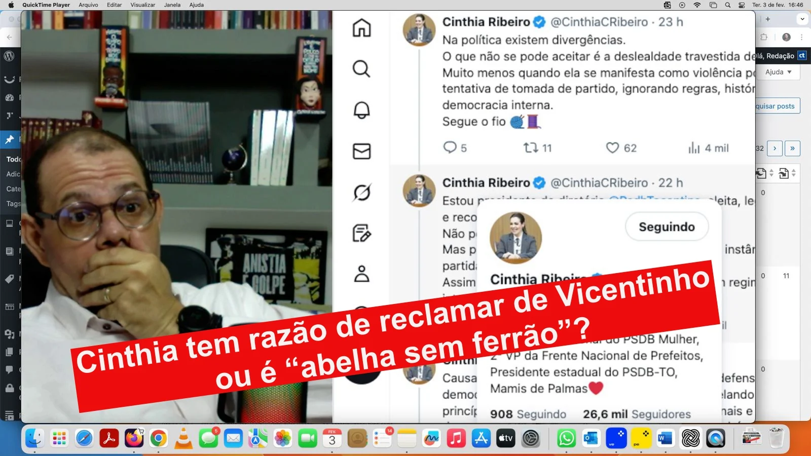 EM OFF | Sem nomeá-lo, Cinthia dispara contra Vicentinho Jr, que pode ingressar no PSDB: “Gente nova, práticas da velha política”; Ataídes e Amastha reagem: “Quem é ela para falar em traição?”