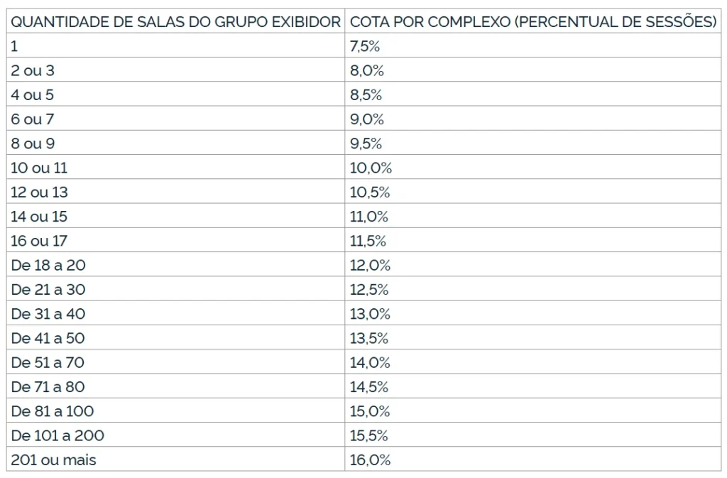 A medida regulamenta a ‘Cota de Tela’ para o ano que vem e estabelece um número mínimo de sessões em salas comerciais. A Agência Nacional do Cinema (Ancine) fará a fiscalização.