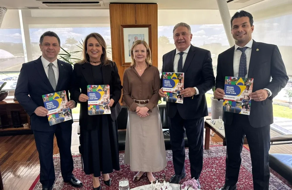 A ministra-chefe da Secretaria de Relações Institucionais, Gleisi Hoffmann, recebeu na terça-feira, 21, uma comitiva tocantinense com a presença do governador em exercício Laurez Moreira (PSD) para discutir projetos de infraestrutura e desenvolvimento econômico, além de tratar da ampliação de investimentos federais e a integração entre União, Estado e municípios. A agenda foi articulada pelo senador Irajá Silvestre (PSD) e contou com a presença do deputado federal Tiago Dimas (Podemos), da ex-senadora e ex-ministra Kátia Abreu.