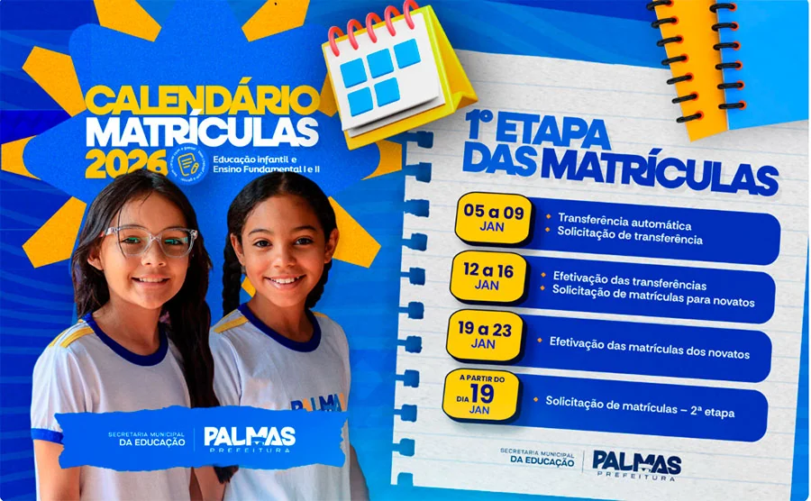 A Secretaria Municipal Educação (Semed) inicia nesta segunda-feira, 5, o período de transferência automática e solicitação de transferências de estudantes da rede municipal de ensino de Palmas referente ao ano letivo de 2026. Já a partir do dia 12, abre o prazo para solicitação de matrículas de estudantes novatos, contemplando desde os Centros Municipais de Educação Infantil (Cmeis) até os anos finais do ensino fundamental, em escolas de tempo parcial e integral.