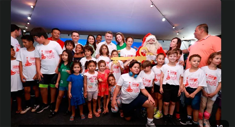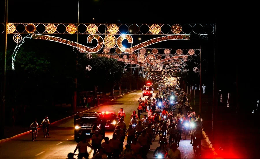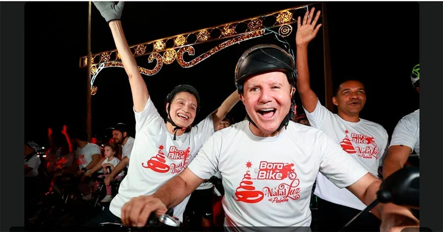 O prefeito de Palmas, Eduardo Siqueira Campos (Podemos), abriu oficialmente na sexta-feira, 5, a programação natalina deste ano, batizada de ‘Natal Luz’. O acendimento das luzes aconteceu em meio a um passeio ciclístico, o ‘Bora de Bike’. A concentração ocorreu no Memorial Coluna Prestes, na Praça dos Girassóis e reuniu mais de 800 ciclistas. O grupo percorreu aproximadamente 4,3 quilômetros até o Bosque dos Pioneiros, pela Avenida Siqueira Campos. O evento contou com a presença dos senadores Eduardo Gomes (PL) e Dorinha Seabra (UB), além do deputado federal Tiago Dimas (Podemos).
