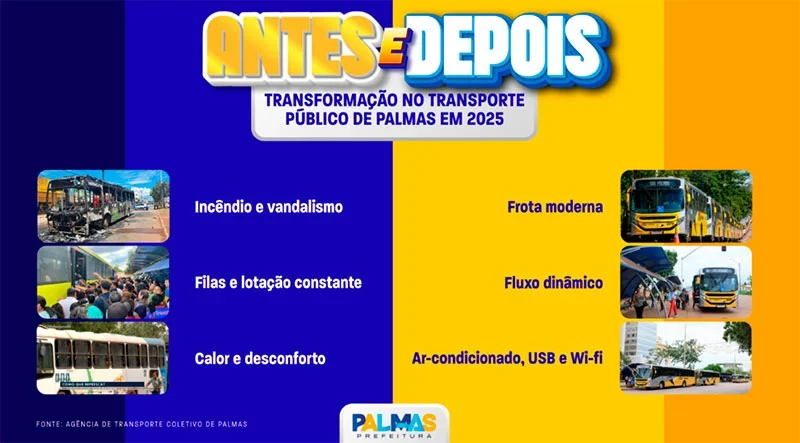 O presidente da Agência de Transporte Coletivo de Palmas (ATCP), Walace Pimentel, destaca que Palmas possui uma das frotas mais novas do País. “Saímos de um sistema comprometido para um serviço digno, com ônibus modernos, acessíveis e de primeira qualidade. A equipe trabalha para aprimorar a operação e garantir um transporte que evolui continuamente, sempre em busca de oferecer o melhor ao cidadão.”