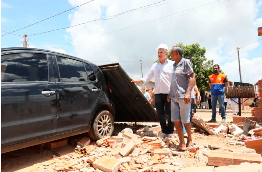 O prefeito de Palmas, Eduardo Siqueira Campos (Podemos), esteve no Jardim Taquari para acompanhar os danos causados por um temporal registrado na noite de quinta-feira, 8. As rajadas de vento provocaram queda de árvores, destelhamento de residências, danos em muros e interrupção no fornecimento de energia elétrica em parte do bairro. A visita aconteceu na sexta-feira, 9.